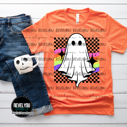 Retro Checkered Ghost - PNG