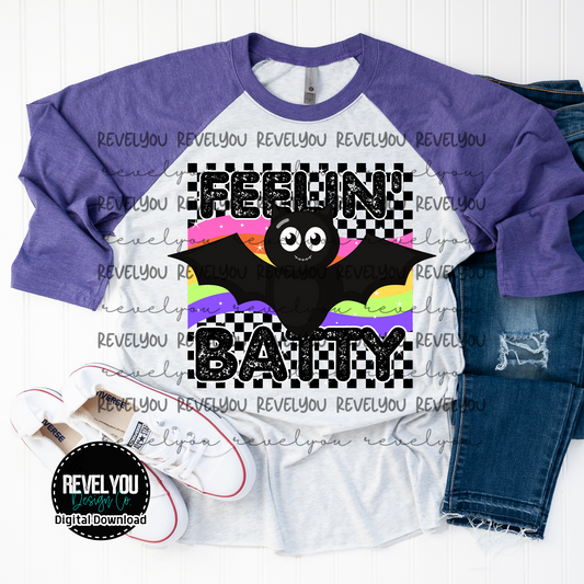 Feelin' Batty Retro Checkered Bat - PNG