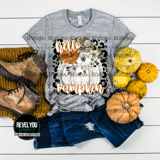 Hello Fall Pumpkin Black Leopard - PNG