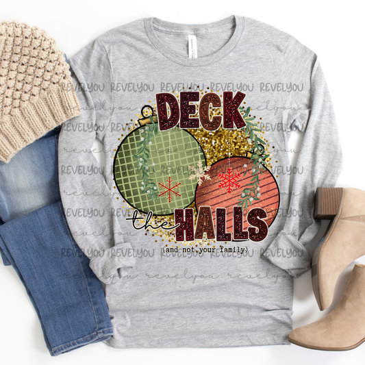Deck The Halls And Not Your Family Faux Embroidery Glitter Look - PNG