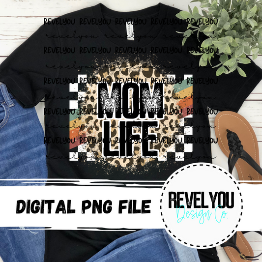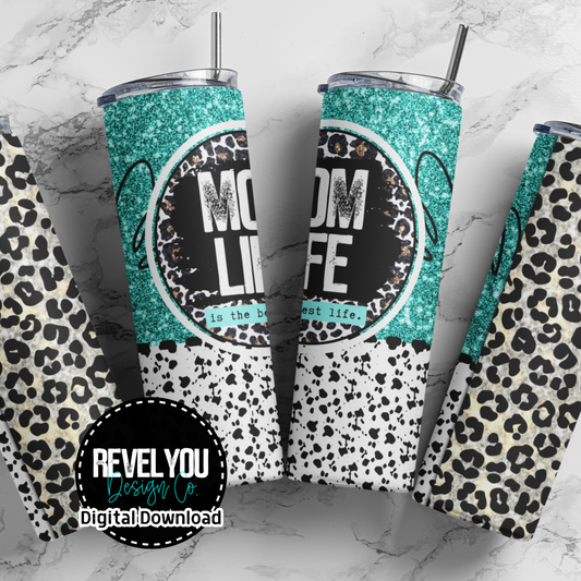 Mom Life Glitter Teal Leopard Panel - Digital Tumbler PNG