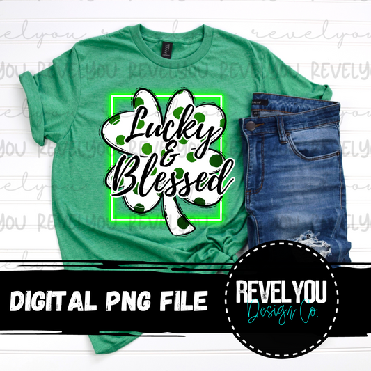 Lucky & Blessed Neon Shamrock - PNG