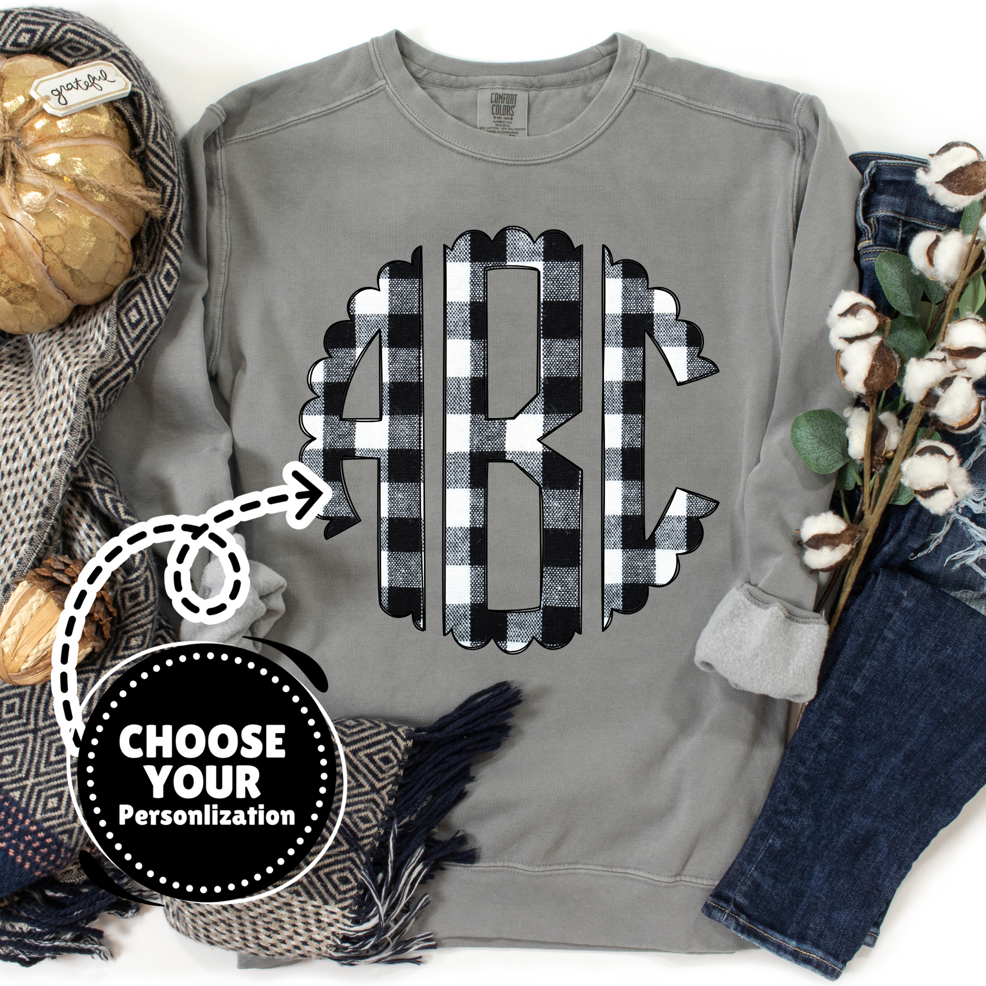 Black White Buffalo Plaid Monogram - Customize Yours - PNG