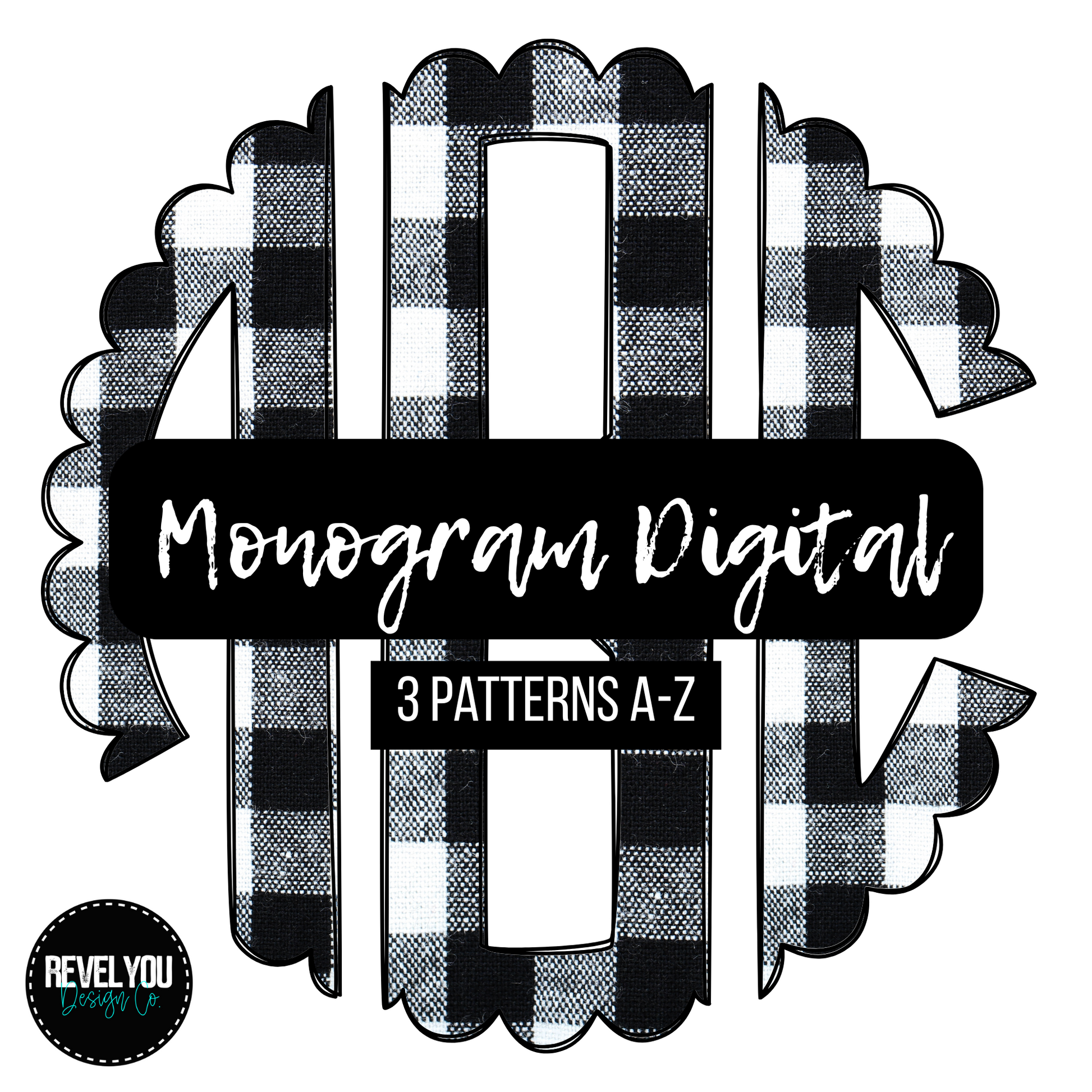 Black White Buffalo Plaid Monogram Set - Individual PNGS