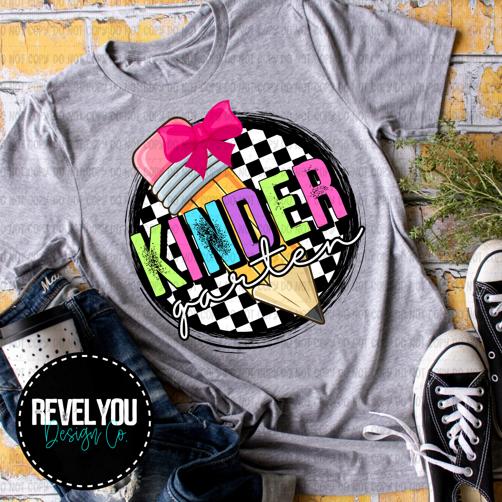 Checkered Circle Pencil Bow Kindergarten - PNG