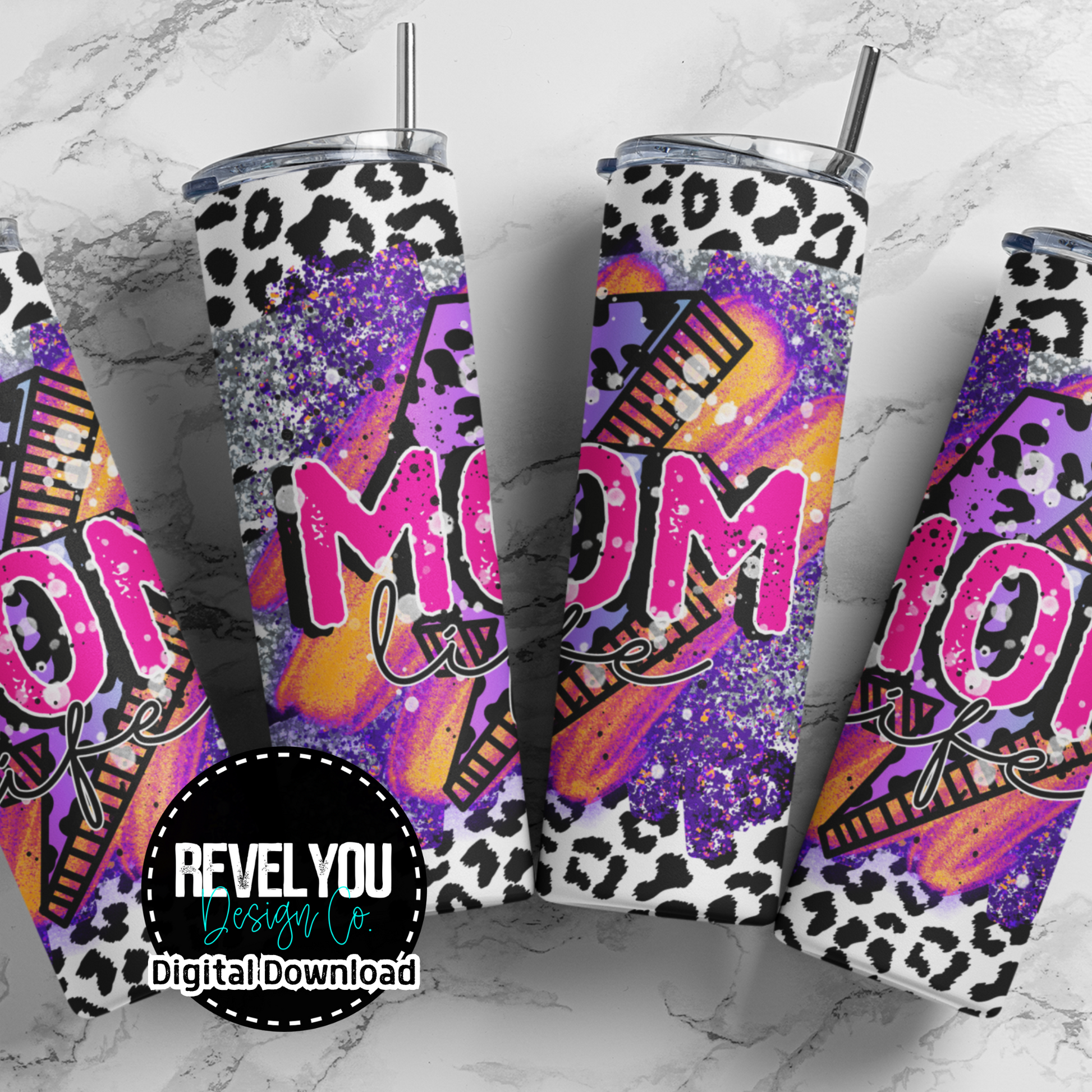 Mom Life Bolt Pink Purple - Digital Tumbler PNG