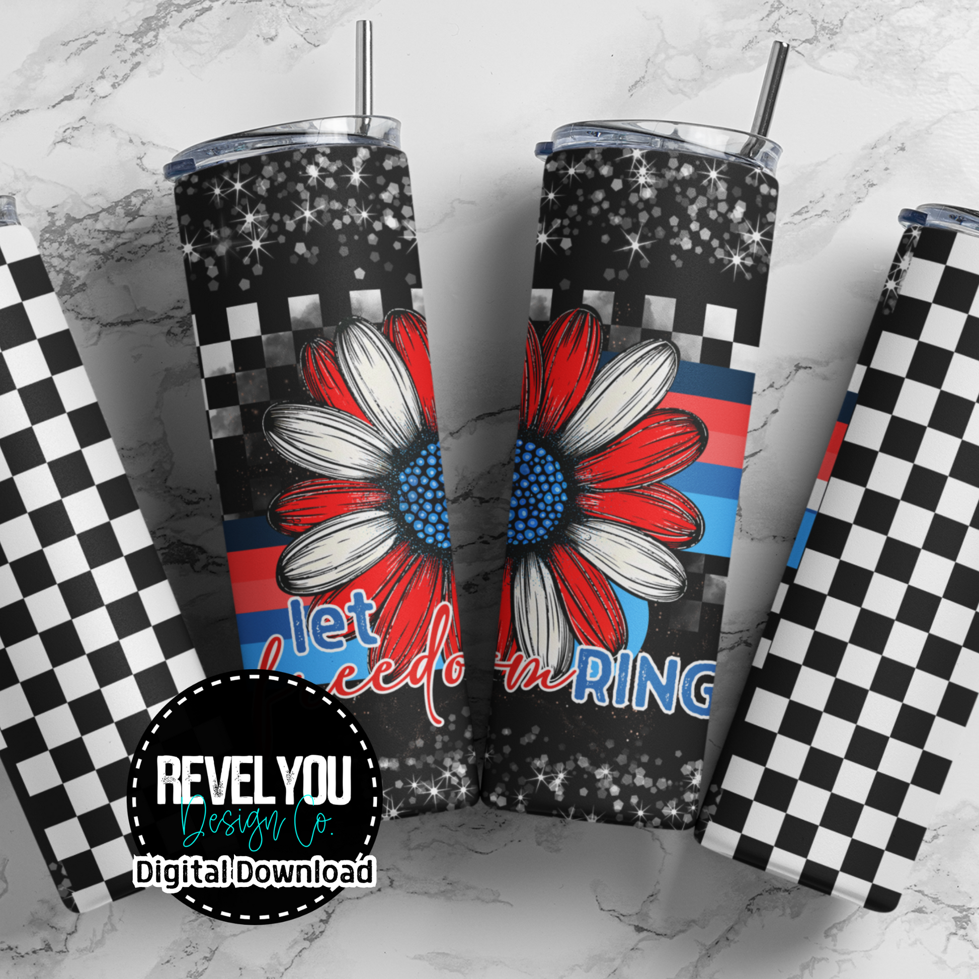 Let Freedom Ring Retro Floral White- Digital Tumbler PNG