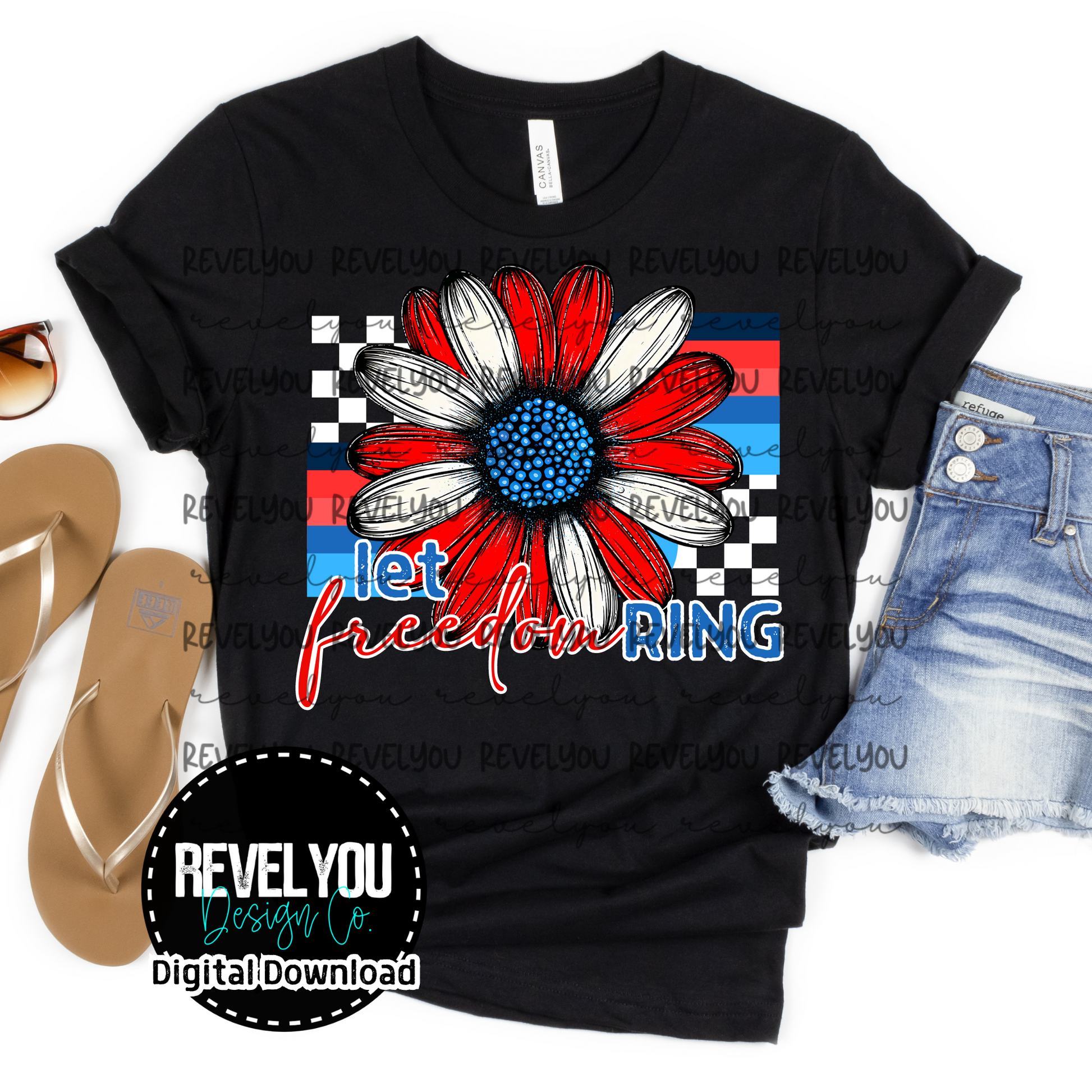 Let Freedom Ring Retro Flower - PNG
