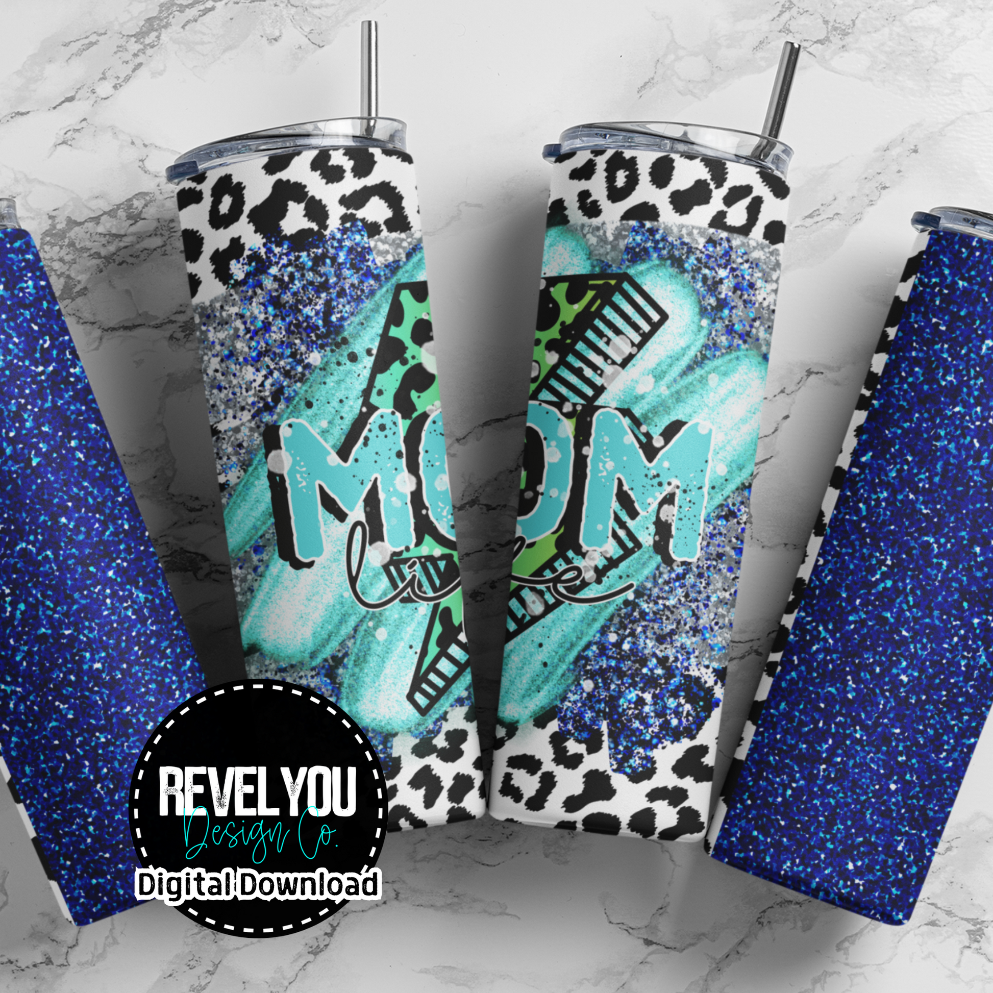 Mom Life Bolt Blue Glitter - Digital Tumbler PNG