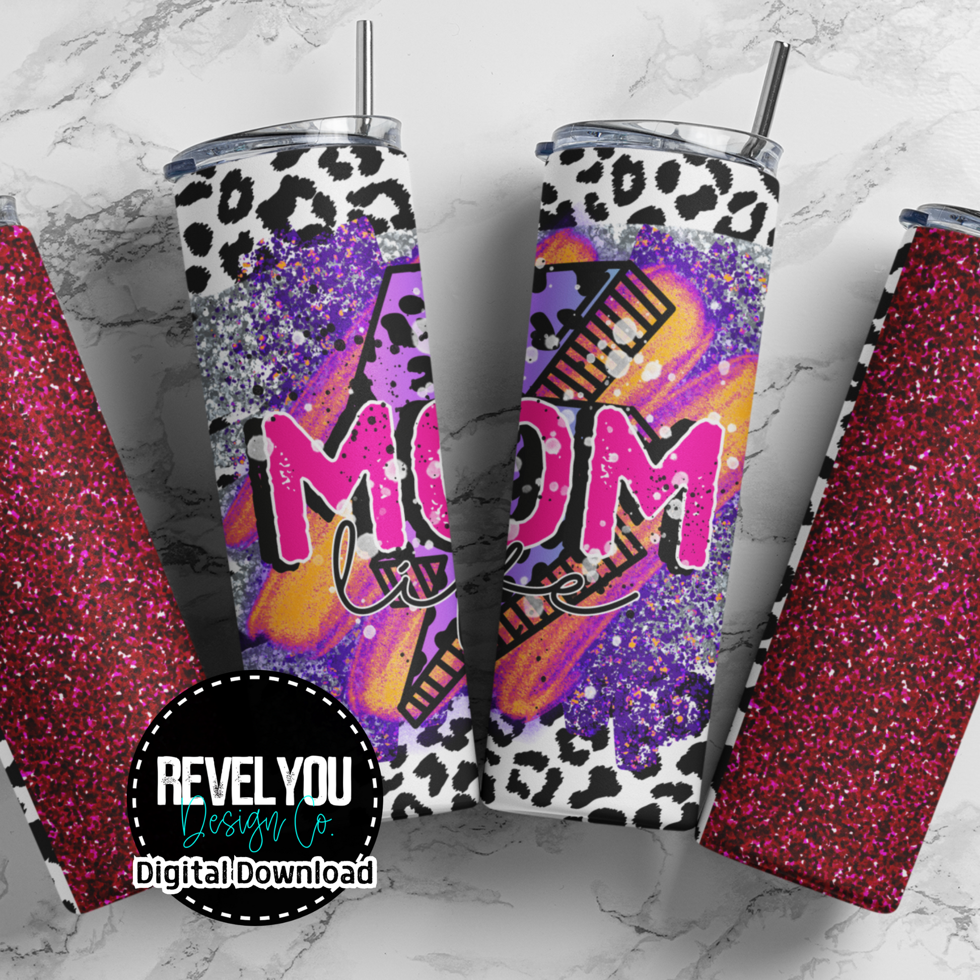 Mom Life Bolt Pink Purple Glitter - Digital Tumbler PNG