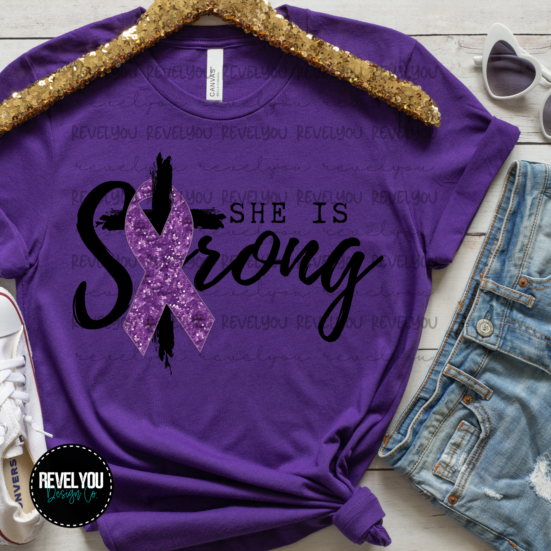 She Is Strong Purple Faux Embroidery Sequin Look - PNG