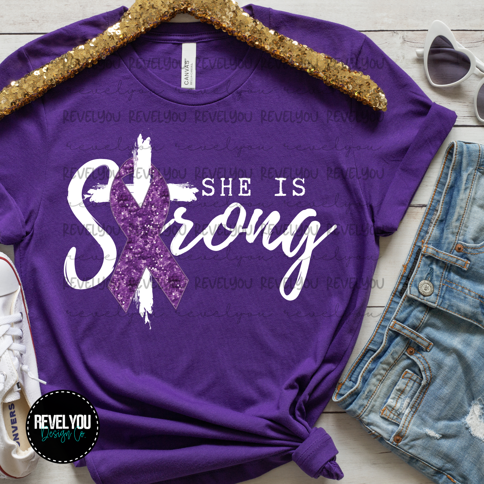 She Is Strong Purple White Faux Embroidery Sequin Look - PNG