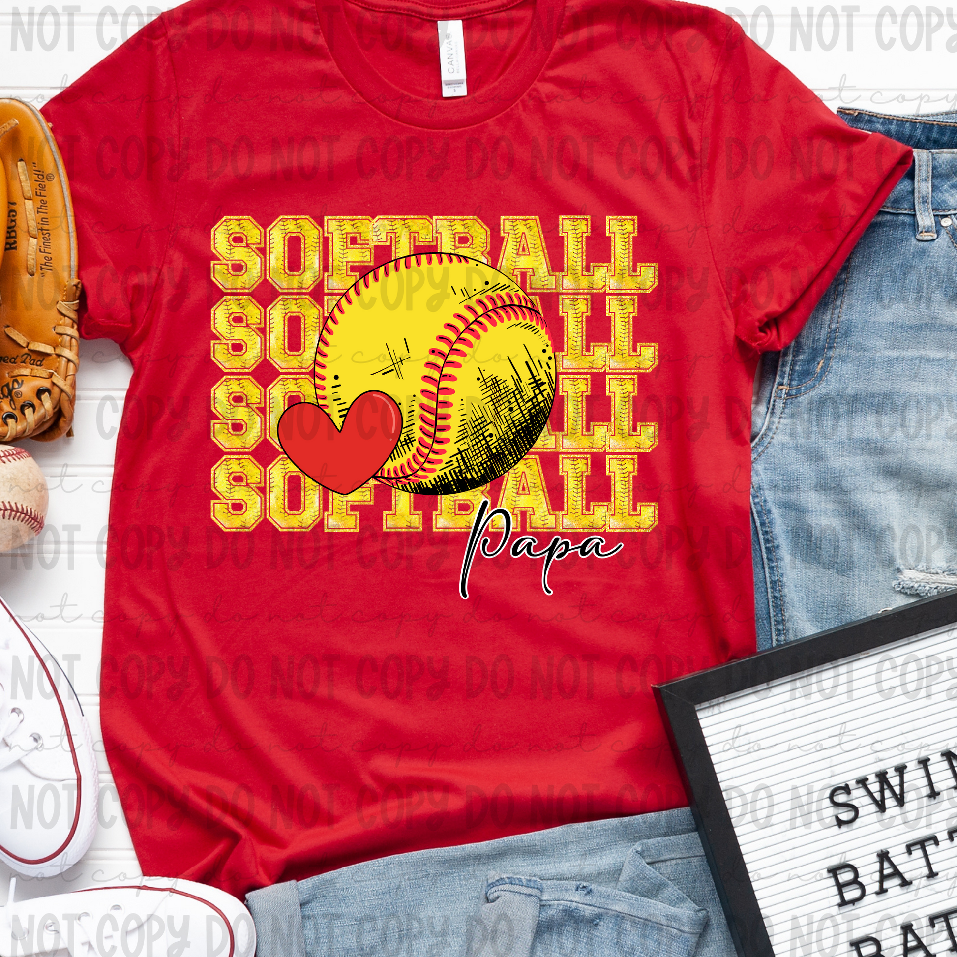 Softball Faux Glitter Stack Papa Heart - PNG