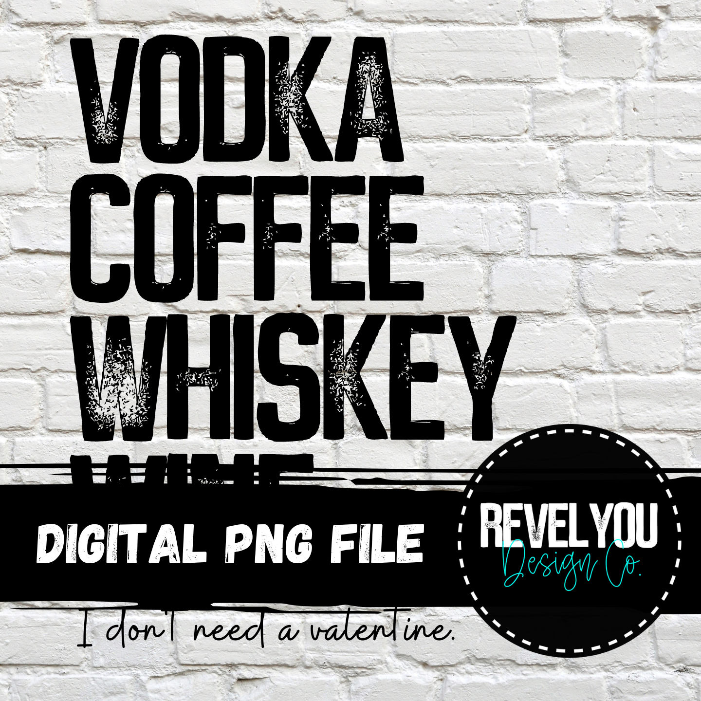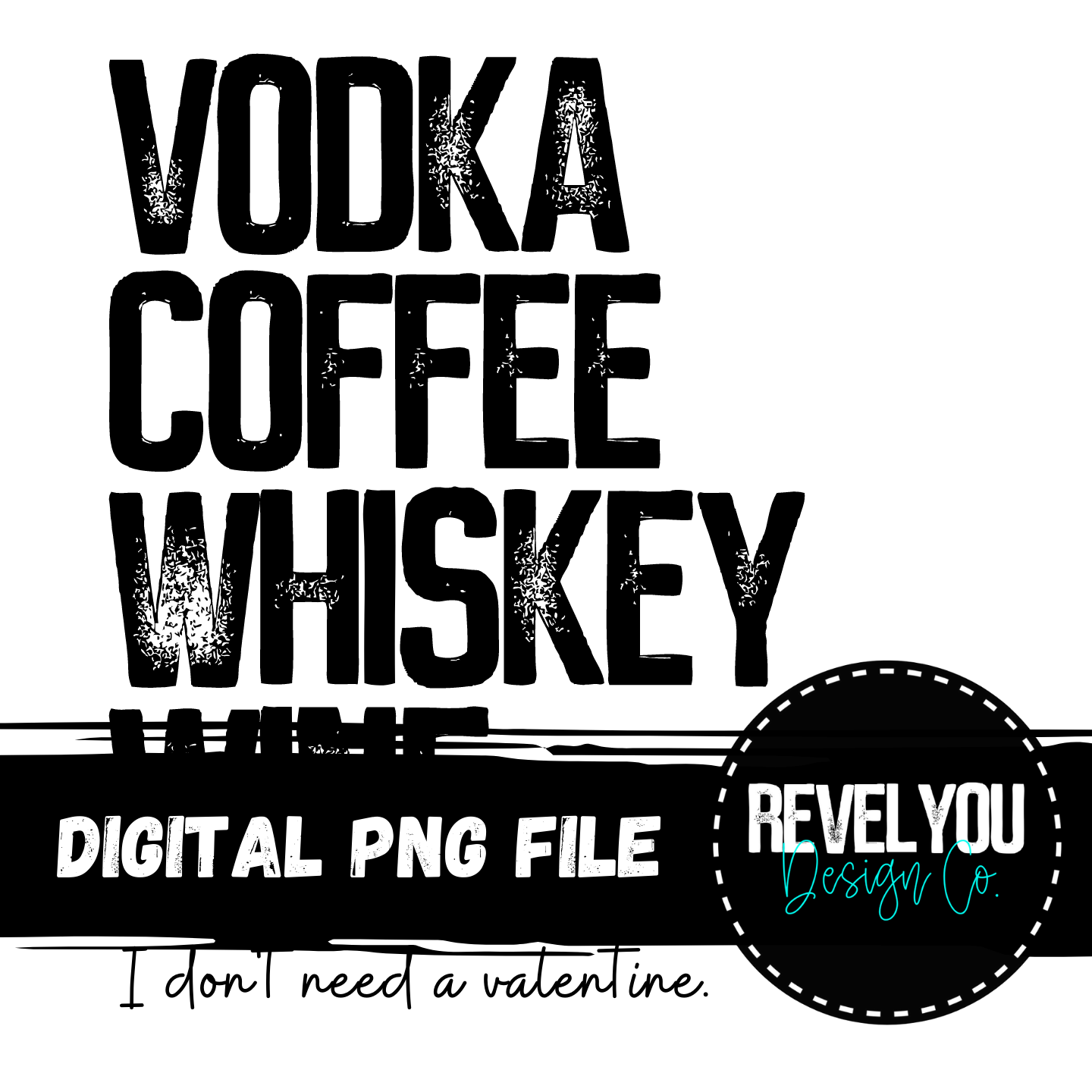 Vodka Coffee Whiskey Wine, I don't need a valentine - PNG